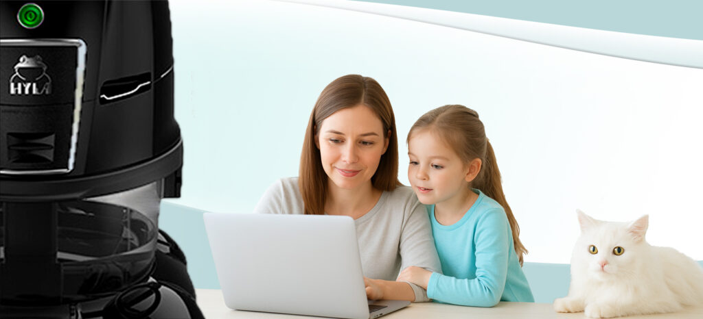 Das HYLA Reinigungssystem bindet Schmutz und Staub mit der Kraft des Wassers und sorgt so für eine effektive und gründliche Reinigung. Saubere, frische Luft unterstützt Ihre Gesundheit und steigert Ihr Wohlbefinden – ein unverzichtbarer Vorteil für jedes Zuhause.